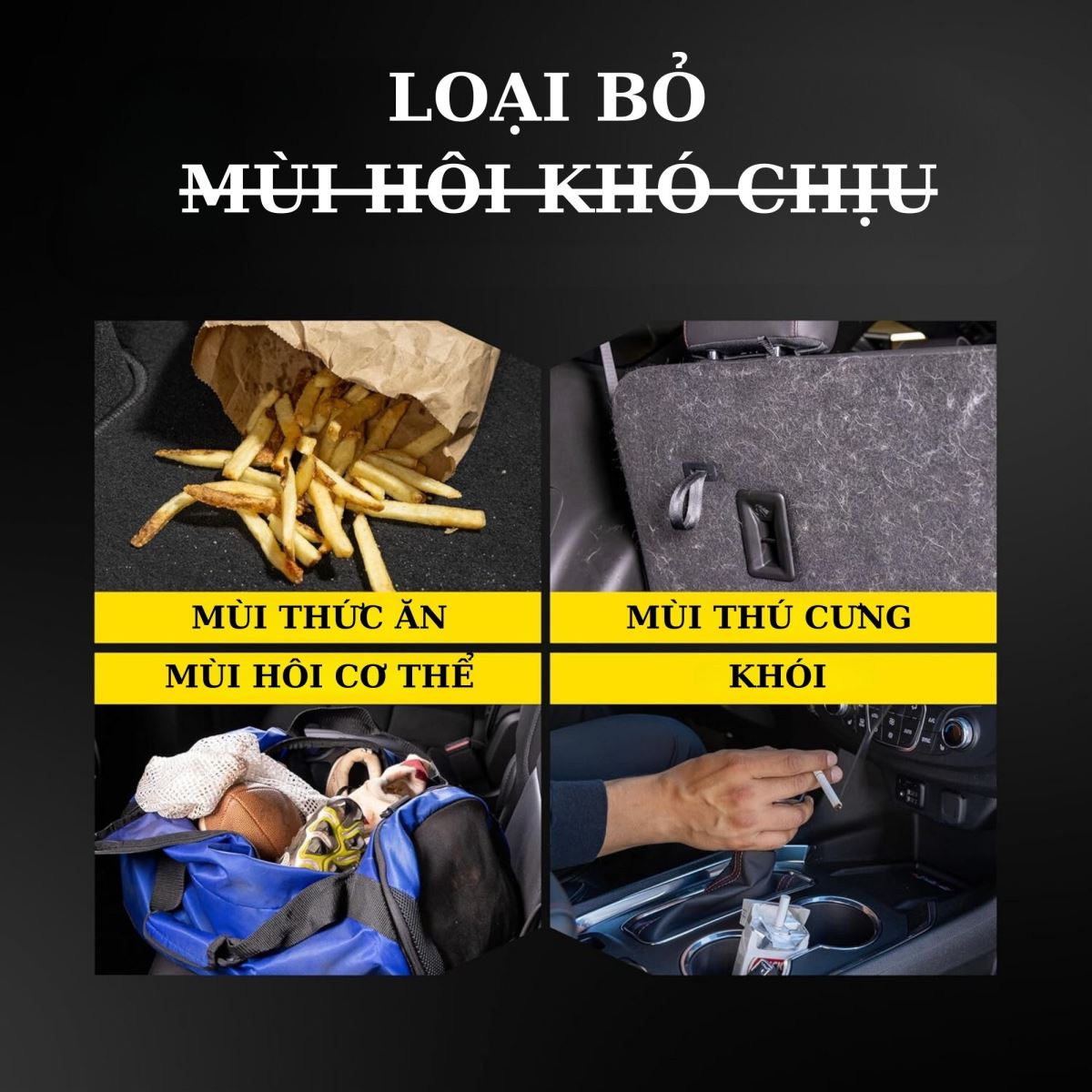 - Ứng dụng công nghệ tiên tiến với 2 chức năng diệt khuẩn & khử mùi, loại bỏ hoàn toàn mùi hôi khó chịu trên xe như: mùi ẩm mốc, thức ăn thừa, mùi thú cưng, ...