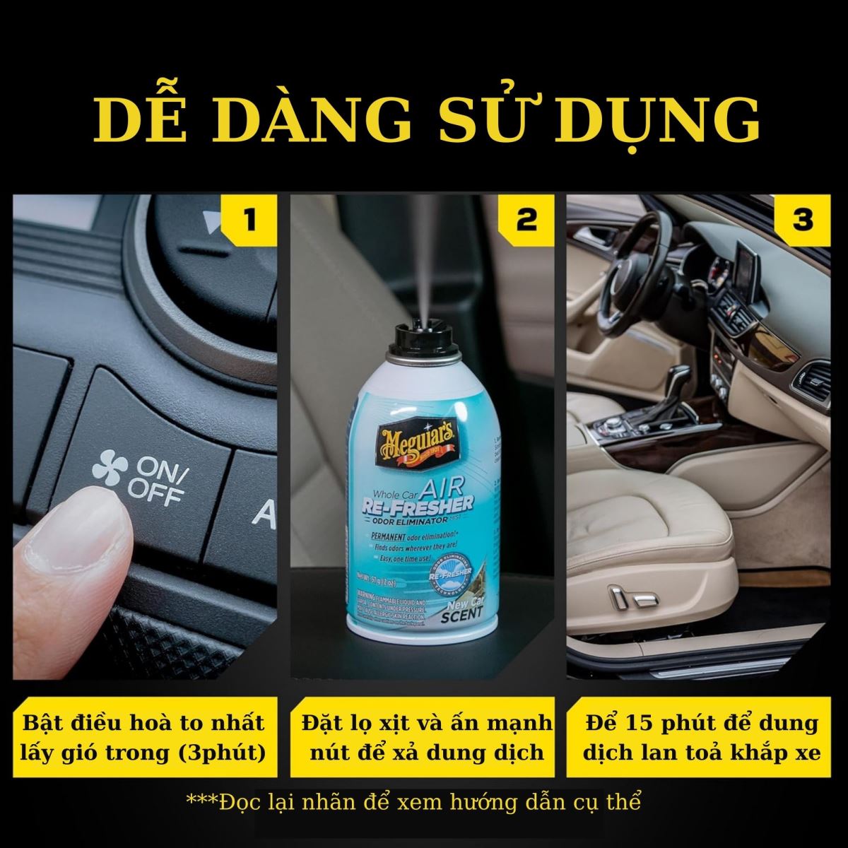 - Khử mùi hiệu quả: Sản phẩm Khử Mùi Điều Hòa của Meguiar’s được thiết kế để khử mùi hiệu quả trong không gian xe hơi, đặc biệt là các mùi khó chịu như mùi thuốc lá, mùi thức ăn, mùi ẩm mốc và mùi hôi của động vật cưng.