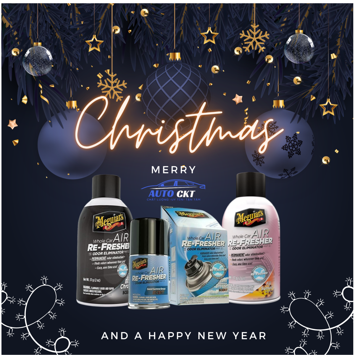 Thay lời cảm ơn tới khách hàng đã tin tưởng, ủng hộ và đồng hành cùng xịt khử khuẩn Air-refresher của Meguiar's, nhân dịp giáng sinh năm 2023 và đón chào năm mới 2024, Autockt xin gửi ưu đãi đến quý khách hàng: